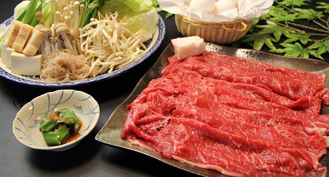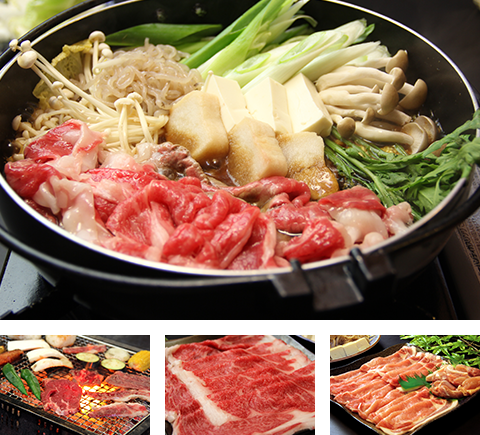 滋賀県産和牛を使用したやまげん特製すき焼きは自家製野菜たっぷり! きれいな水と栄養バランスに配慮された飼料で育まれたその肉質は 霜降り度合が高く、特有の香りと肉の柔らかさが特徴です。 また、プリプリの近江軍鶏やBBQなど、季節限定のお食事も楽しめます♪